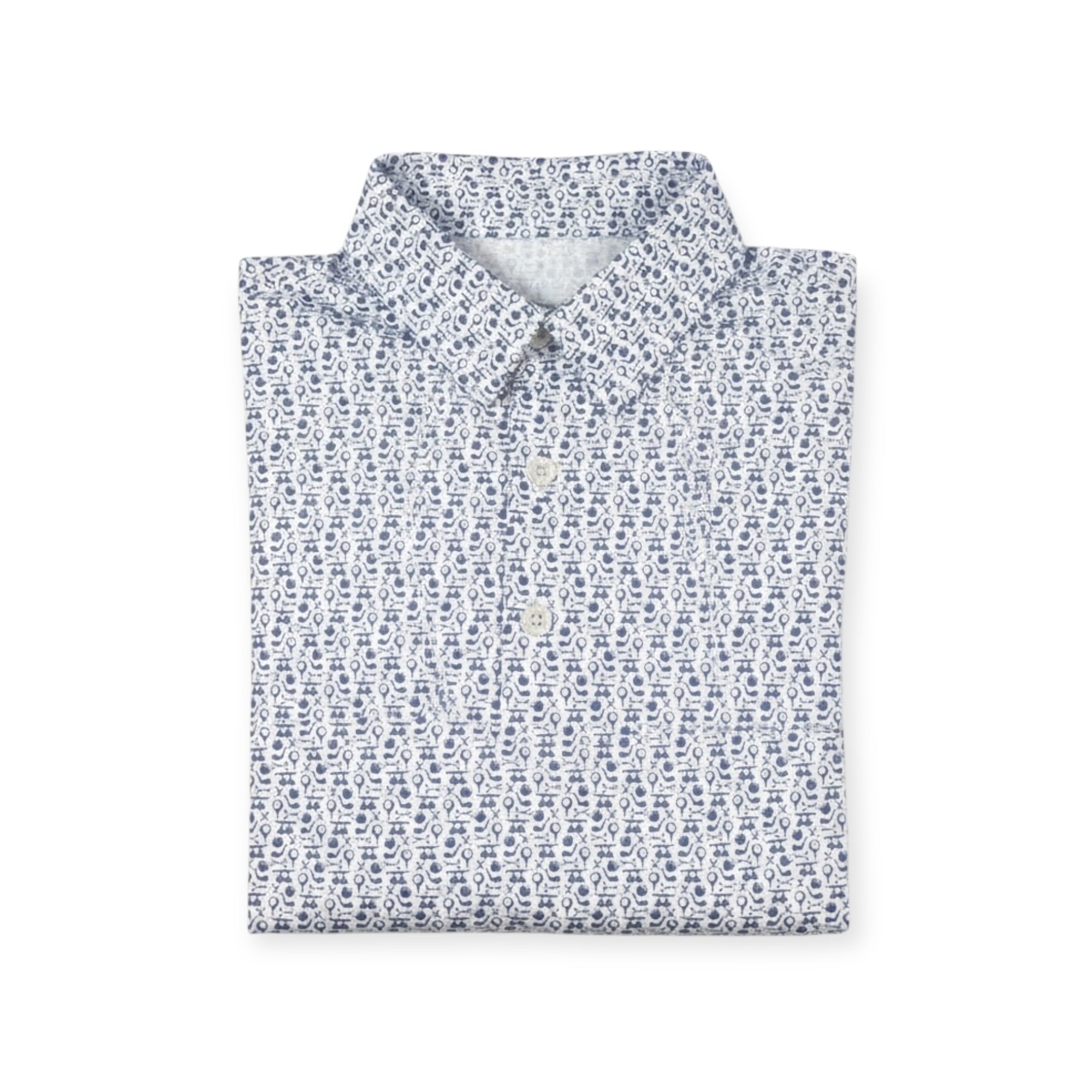 Albatross Polo - White w/ All - Over Golf Pattern - Bald Head Blues - The Mulligan Merchant