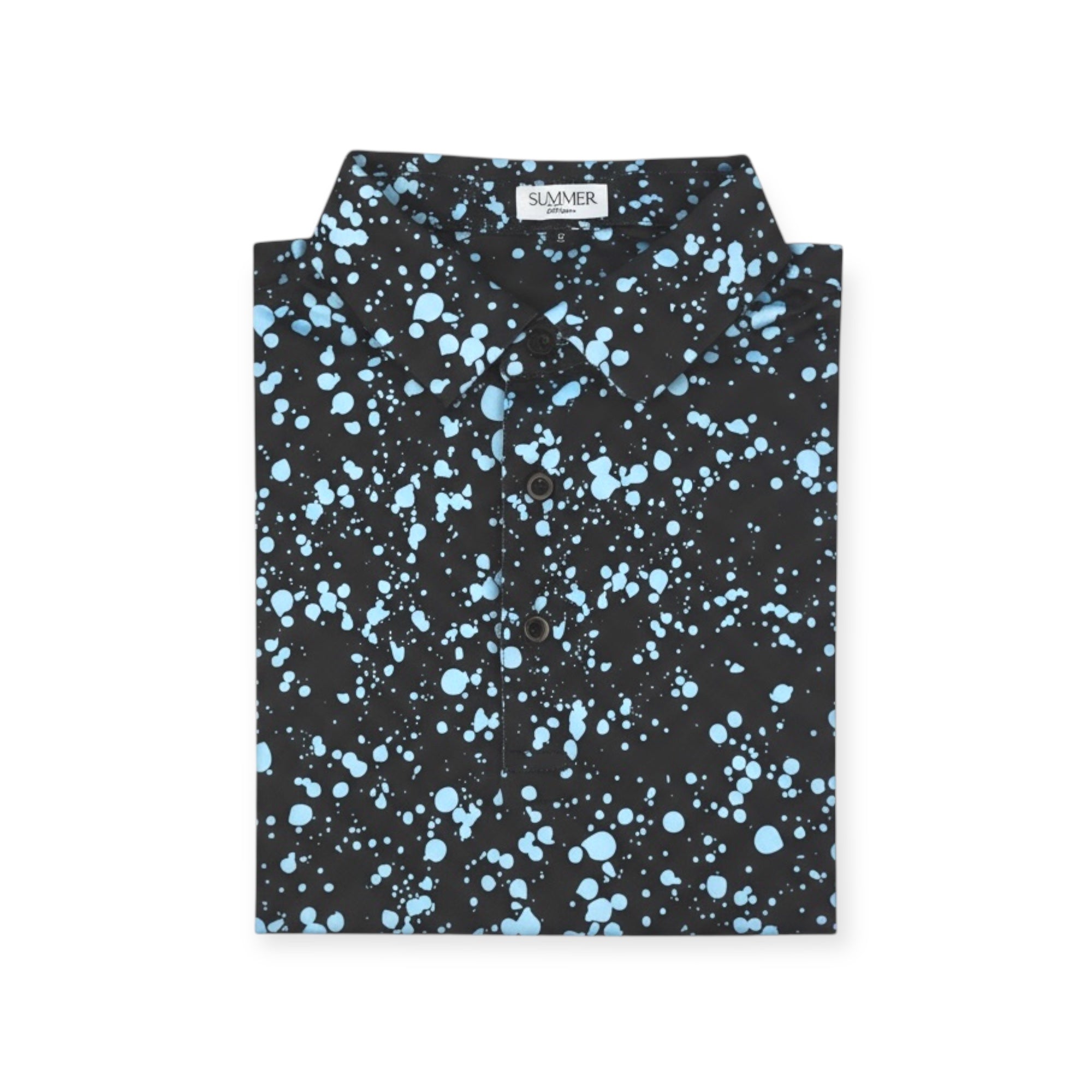 Elevate your style with our Black Paint Splatter Performance Polo from the private label Summer Rayne. Stand out from the crowd with the unique black and light blue paint splatter design while staying cool and comfortable in this high-performance polo. Perfect for any occasion, from the office to the golf course.