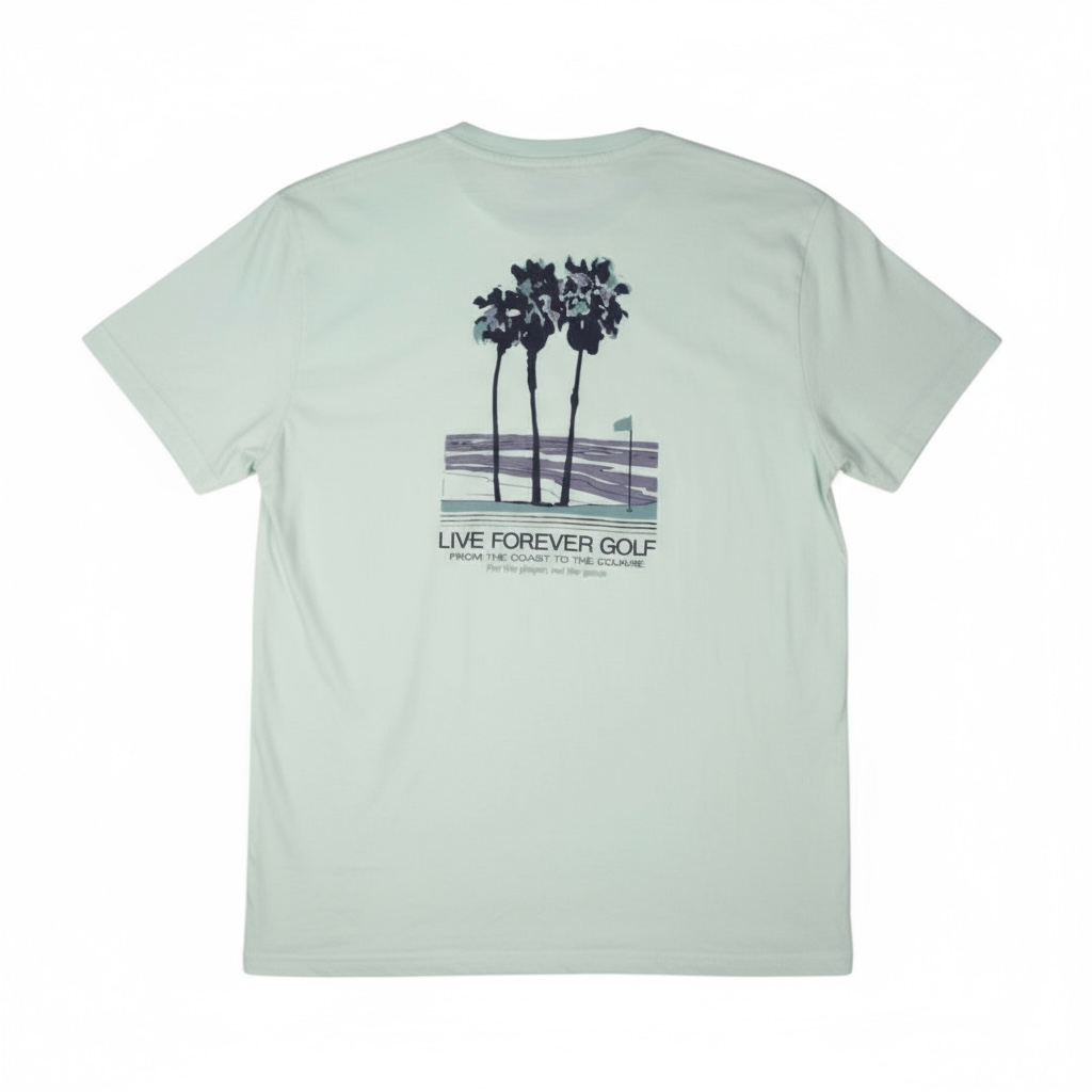 Introducing the Tres Palmas Graphic Tee by Live Forever Golf - your new go-to favorite that's destined to become as comforting and familiar as that perfectly worn-in record of your all-time favorite tune. Get ready to hit repeat on relaxation and style.