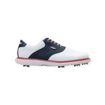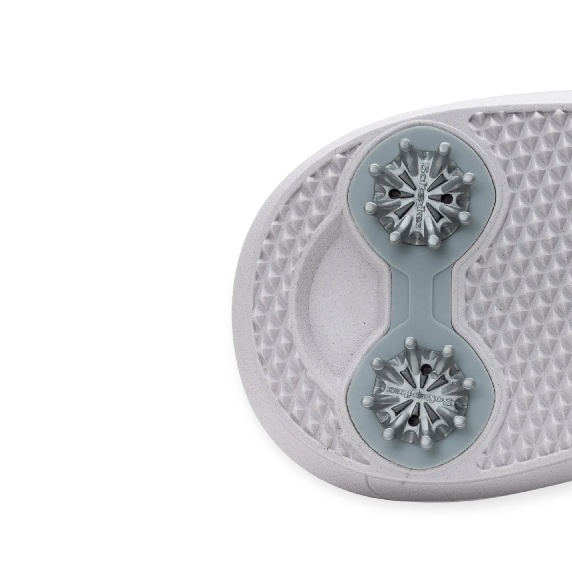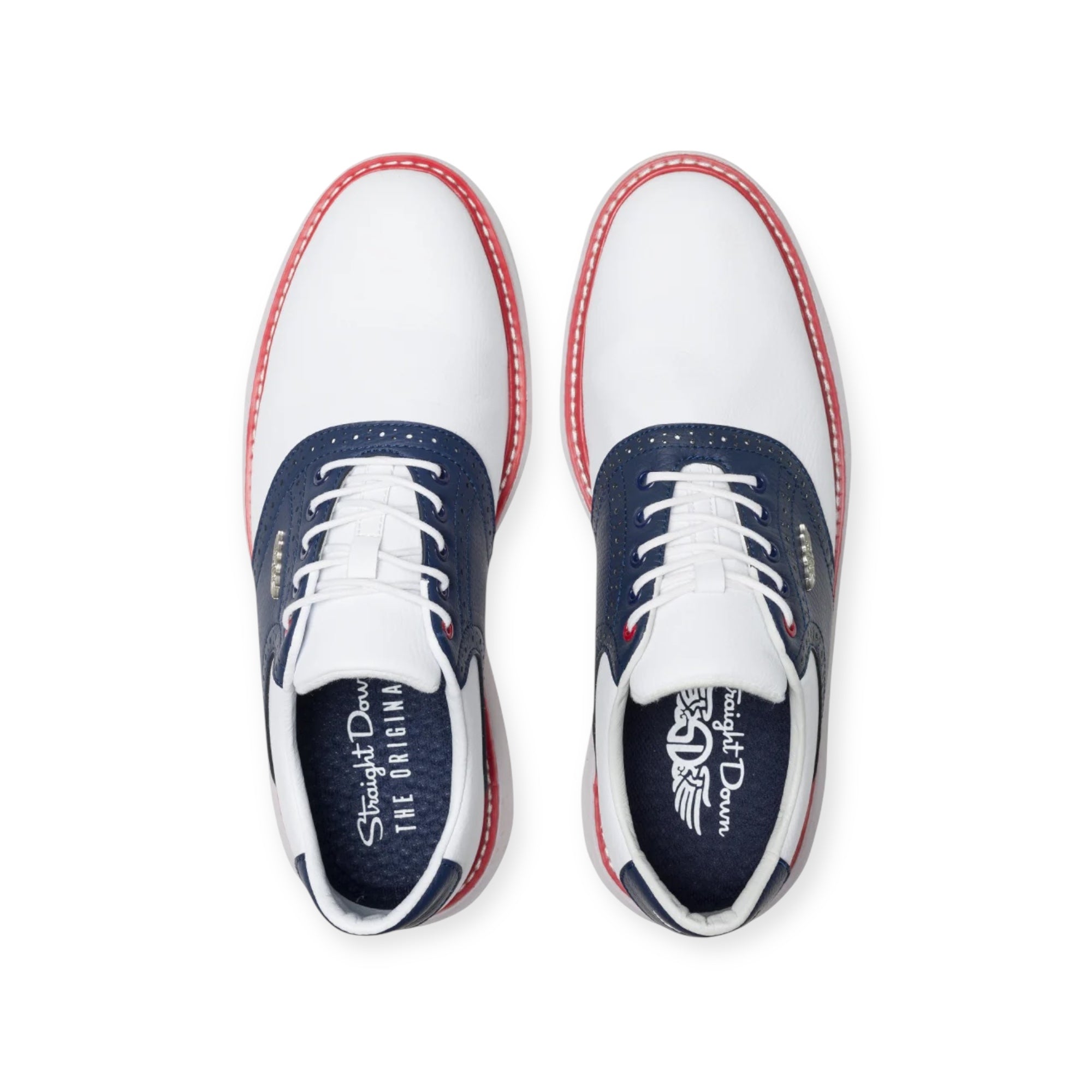 Experience unparalleled comfort with the lightest soft spike golf shoe available. Designed with a custom outsole footbed mold, this shoe has been rigorously tested by Straight Down Golf professionals to ensure optimal traction and stability. Featuring a full lace-up design and a classic saddle style, it comes in both solid and two-tone color options. The insole incorporates our patented "Ball" cushion technology, reducing fatigue with every step you take.